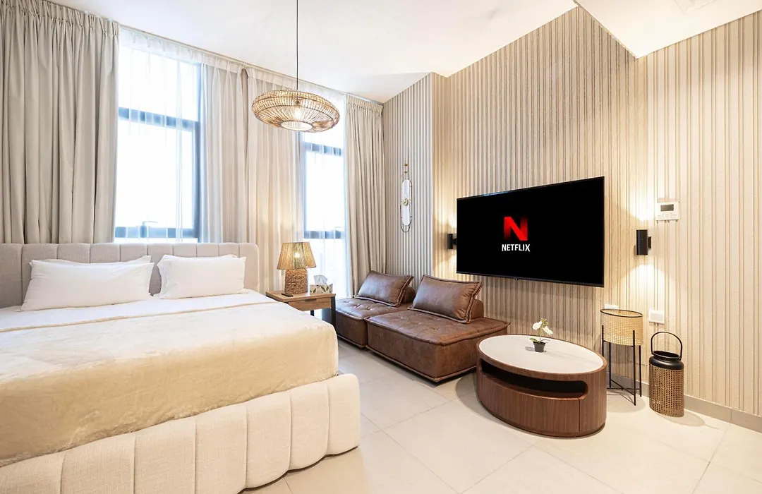 Az ön kényelme az elsődleges szempont, ezért az apartman teljesen felszerelt konyhát kínál kávé/tea készítővel, hűtővel és sütővel. A vendégek a Sharjah nemzetkozi repülőtértől 5 km-re lesznek elszállásolva.